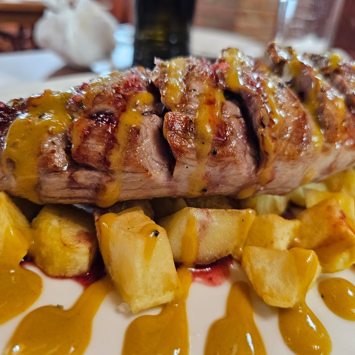 One of the standout features of Restaurante Marqués Arroz Y Brasas is its diverse and flavorful menu. If you're in the mood for something rich and savory, the Presa is a great option. This cut of pork is cooked to perfection, offering a tender and juicy bite every time. Another crowd favorite is the Solomillo de Cerdo Ibérico Con Miel Y Mostaza, a dish that combines the sweetness of honey with the tang of mustard to complement the succulent Iberian pork.